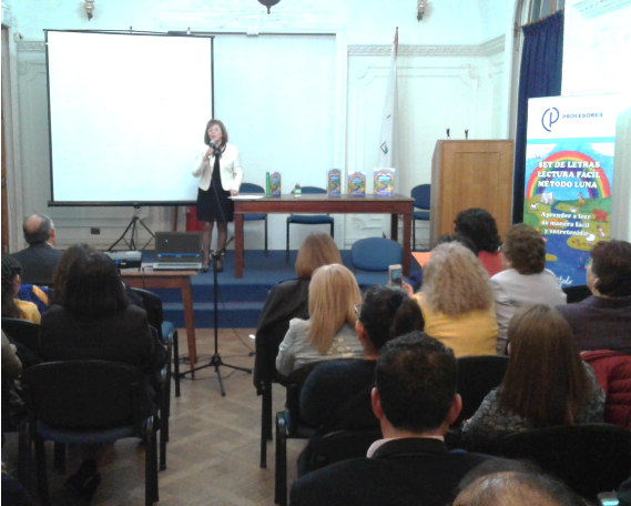 Enero 2019. Capacitación a docentes, asistentes de aula, educadores y equipo PIE en Colegio Salomón Sack del Departamento de Educación y Administración Municipal, comuna Lo Espejo. DAEM. Primer semestre académico 2019, estudiantes en su etapa inicial de la lectura con problemas, con ritmo lento en el aprendizaje no lectores y necesidades especiales, aprendieron a leer con el Método Luna. Lectura Fácil de manera entretenida con un juego y en corto plazo.